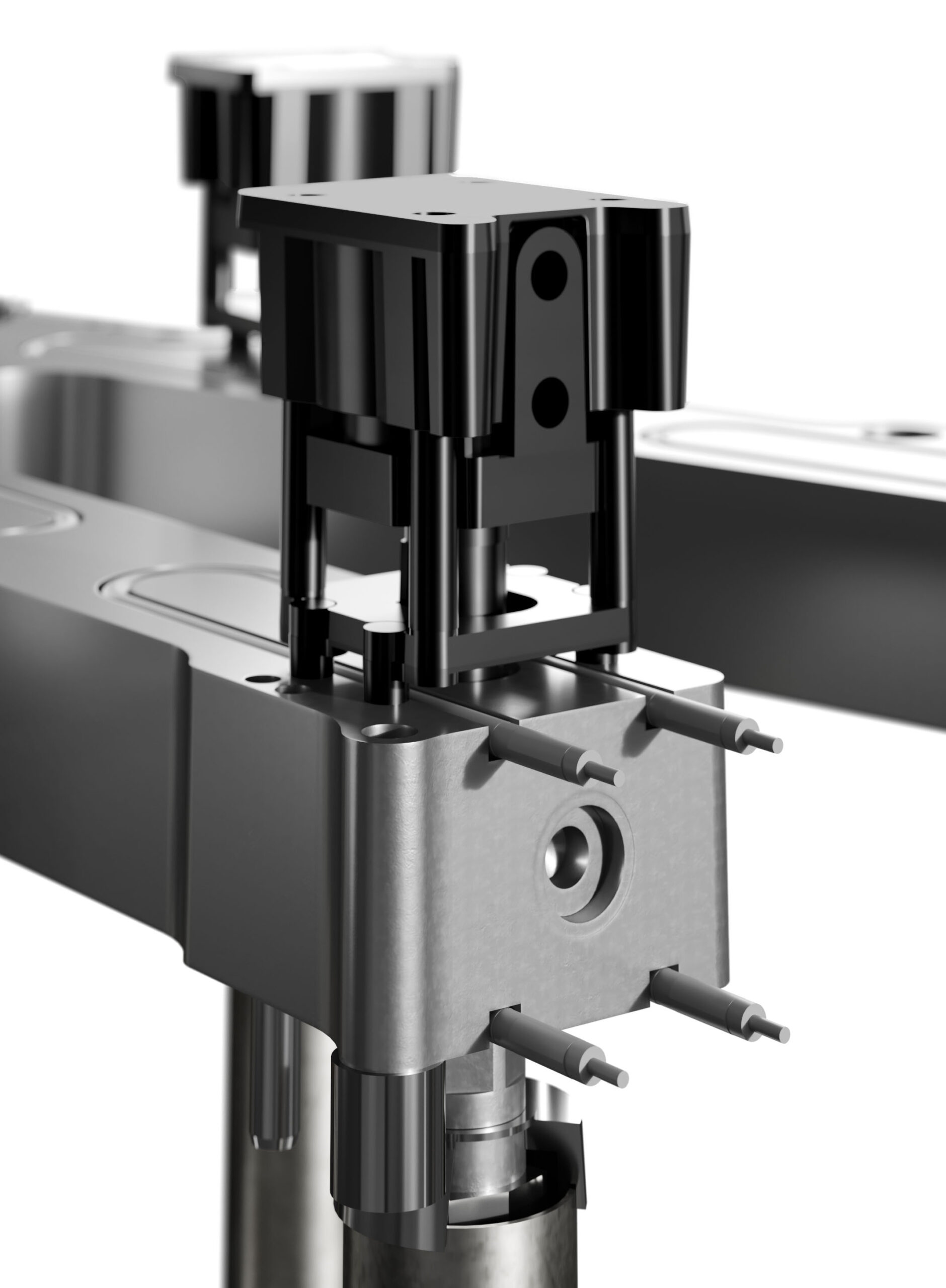 As high-precision actuators, the cylinders of hot runner systems are crucial components for continuously trouble-free process control. In conventional systems, water cooling ensures that the optimum working temperature is maintained. With HRScool Evo, a thermally insulating air gap towards the cavity reduces both the heating of the cylinder and the thermal loss of the manifold. In addition, a cover made of a highly heat-conductive material on the opposite side ensures optimum heat dissipation towards the cold clamping platen. For perfect matching, the height can be adjusted via telescopic supports, enabling outstanding heat transfer and thermal uniformity over the entire hot runner system to maximise part quality. Thanks to the high efficiency, the more complex water-cooled systems can be replaced in many cases without compromise.