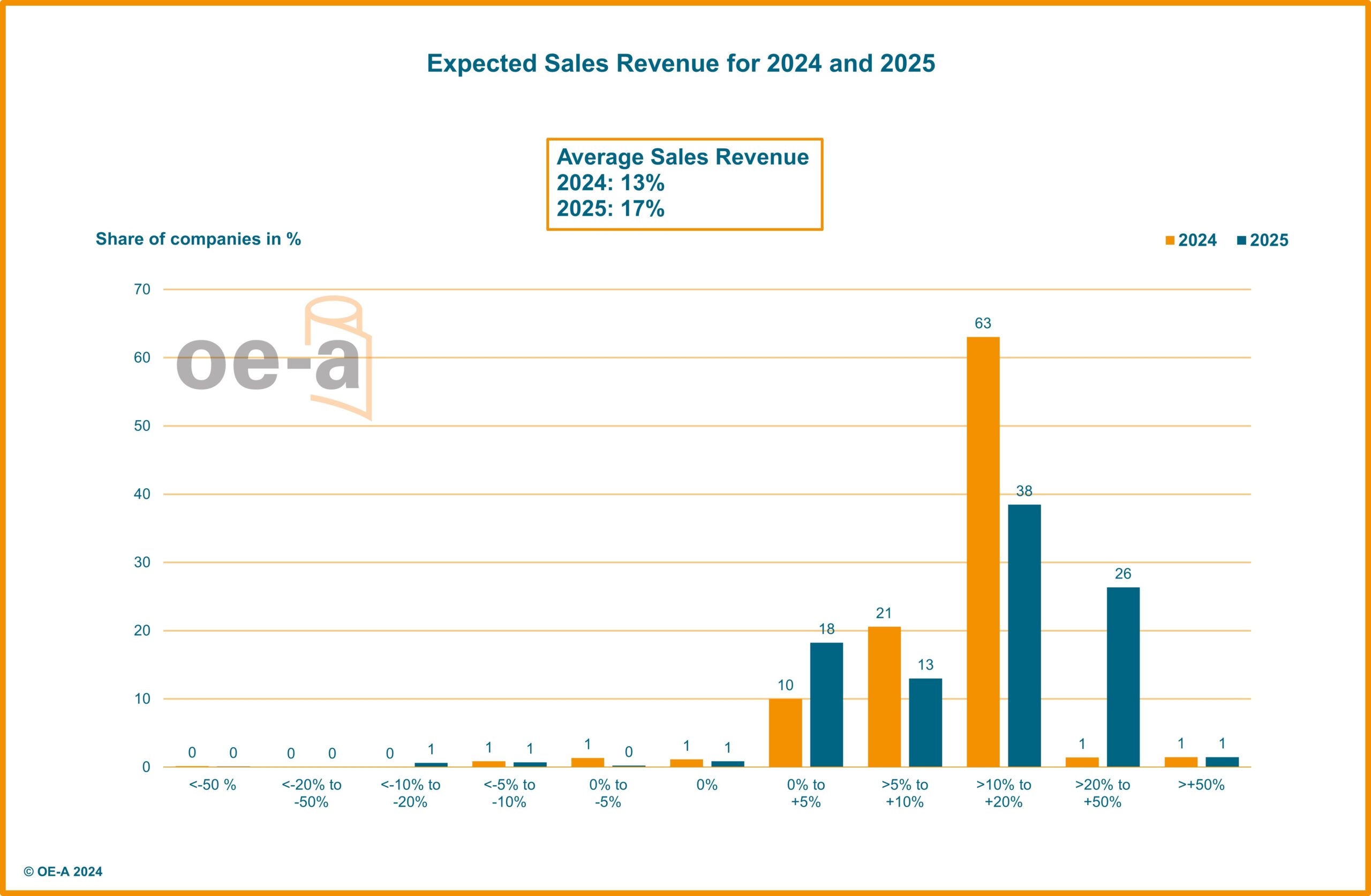 international press conference at LOPEC 2024 in Munich, Germany. The bi-annual survey is conducted by the Organic and Printed Electronics Association (OE-A), an international working group within VDMA. For each survey, OE-A member organizations from the entire value chain, from R&D to material suppliers to end users, are asked to provide qualitative data on the state of the industry, expected sales development and markets.